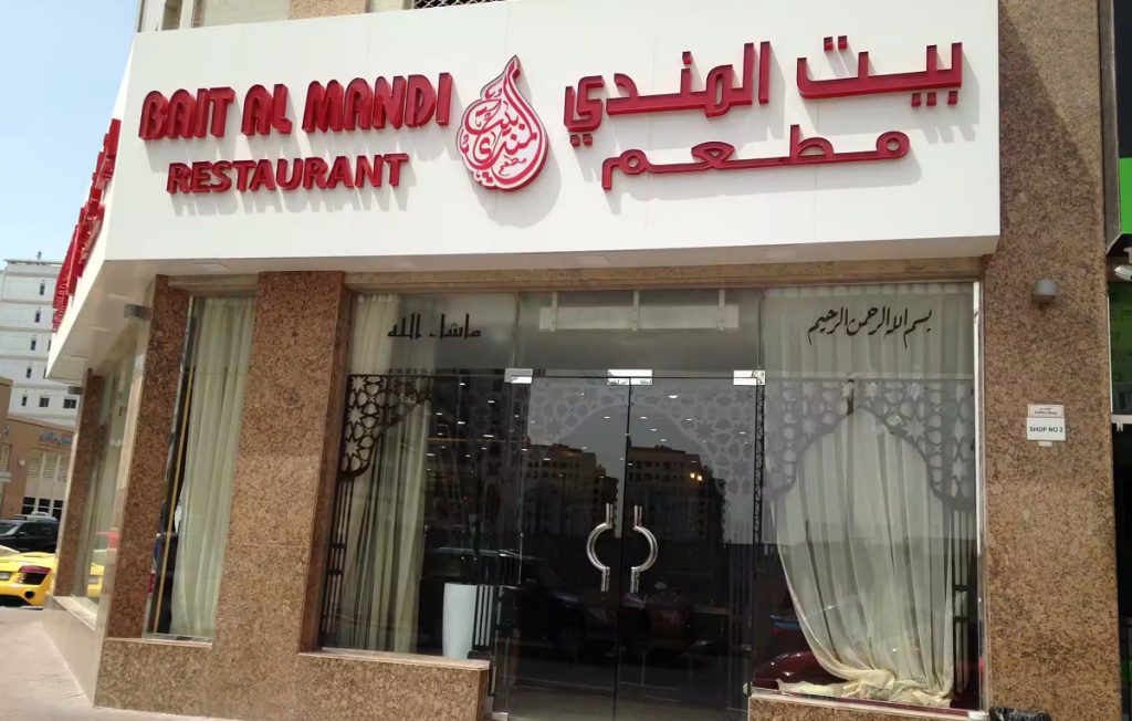- منو: مندی مرغ و گوشت، مدفونه و انواع کبابهای عربی که روی سینیهای بزرگ همراه با برنج عطردار سرو میشوند.